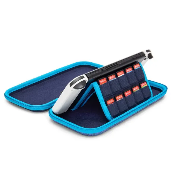 Leve seu Nintendo Switch – modelo OLED, Nintendo Switch ou Nintendo Switch Lite para onde quiser com este estojo protetor slim. Por dentro, você encontrará um forro de feltro e um suporte embutido para o modo de mesa, além de espaço para dez cartões de jogo e um pequeno bolso de malha. Este estojo portátil oferece a liberdade de se divertir com seu Nintendo Switch onde e quando quiser.