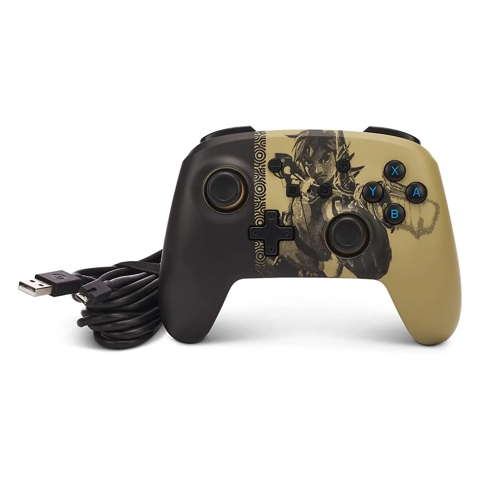 Aprimore a sua jogabilidade com o controle Enwired da PowerA, com motores de ruído duplo imersivos, ergonomia com alças confortáveis, cabo USB destacável de 3m, botões mapeáveis e precisos para diversos jogos, sem necessidade de baterias, além do estilo do herói de coração de leão de Hyrule.